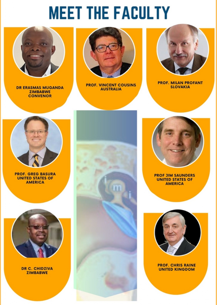 The course is convened by Dr. Erasmas Muganda (Zimbabwe) and features distinguished experts including Prof. Vincent Cousins (Australia), Prof. Milan Profant (Slovakia), Prof. Greg Basura (USA), Prof. Jim Saunders (USA), Dr. C. Chidziva (Zimbabwe), and Prof. Chris Raine (UK).